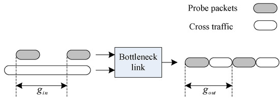 This paper adopted the method of GPM, and assumed that there was only one bottleneck link in the network, as shown in Figure 1. Since the cross traffic has a certain effect on the sequence of the probe packets, the function between the input interval of the probe packets and the cross traffic can be obtained by analyzing the changes in the interval of the probe packets. Then, the bandwidth of the bottleneck link is subtracted from the cross traffic to obtain the available bandwidth of the link [22].