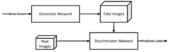 Generative Adversarial Network (GAN) is a class of deep learning models invented by Ian Goodfellow in 2014 [23]. GAN models have two main networks, called the generative network and discriminative network. The first neural network is the generator network, responsible for generating new fake data instances that look like training data. The discriminator tries to distinguish between real data and fake (artificially generated) data generated by the generator network as shown in Figure 2. The mission GANs models that generator network is to try fooling the discriminator network and the discriminator network tries to fight from being fooled [24,25,26,27].
