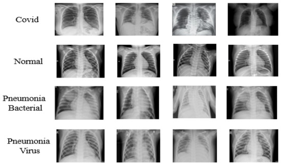 The COVID-19 dataset [50] utilized in this research [51] was created by Dr. Joseph Cohen, a postdoctoral fellow at the University of Montreal. The Pneumonia [44] dataset Chest X-ray Images was used to build the proposed dataset. The dataset [52] is organized into two folders (train, test) and contains sub-folders for each image category (COVID-19/normal/pneumonia bacterial/ pneumonia virus). There are 306 X-ray images (JPEG) and four categories (COVID-19/normal/pneumonia bacterial/ pneumonia virus). The number of images for each class is presented in Table 3. Figure 3 illustrates samples of images used for this research. Figure 4 also illustrates that there is a lot of variation of image sizes and features that may reflect on the accuracy of the proposed model which will be presented in the next section.