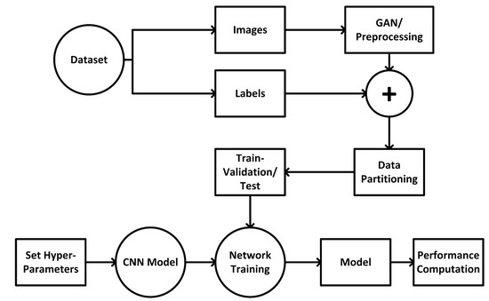 The proposed model includes two main deep learning components, the first component is GAN and the second component is the deep transfer model. Figure 4 illustrates the proposed GAN/Deep transfer learning model. Mainly, the GAN used for the preprocessing phase while the deep transfer model used in the training, validation and testing phase.