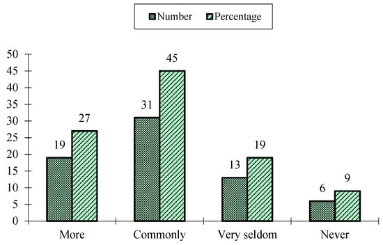 Sixty-nine percent of students believe that multimedia teaching is effective in promoting an active classroom atmosphere and improving interest in learning. However, 22% of students think that it is not very good, and 11% of students think that it is purely watching. This shows that the structure should be reasonable when using multimedia to organize teaching. Teachers should not only focus on form but on teaching content. Regarding the effect of multimedia teaching on promoting communication between teachers and students, 35% of students believe that multimedia teaching has a better effect in promoting communication between teachers and students. Thirty-two percent of students think that the effect is average; 22% of students think it is not very good; and 11% of students believe that the teaching effect is bad. This shows that multimedia teaching has affected the communication between teachers and students to a certain extent. The original “human–human communication” became “human–machine communication”. This is not conducive to the transmission and reception of knowledge and the improvement of students’ knowledge level. Furthermore, the quality of teaching is affected. The specific results are shown in Figure 8.