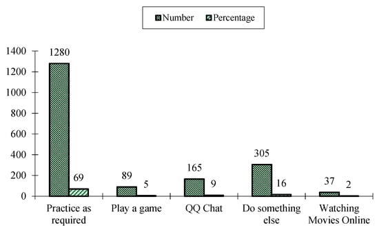 According to the statistics of the above table, 69% of the students can practice at the teacher’s request. Thirty-one percent of the students did not practice as required by the teacher and did something that would affect learning. This shows that teachers should strengthen their sense of responsibility and strengthen classroom management to ensure that teaching is carried out in an orderly manner. Students should not be addicted to the Internet, which affects the development of mind and body. The specific results are shown in Figure 6.