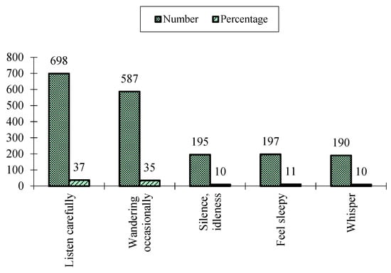 According to the survey results, most of the students can listen when teachers use multimedia to organize teaching. This shows that the use of multimedia teaching can enhance students’ interest in learning. However, some students do not take classes seriously, and the reasons for this are also to be studied. The specific results are shown in Figure 7.