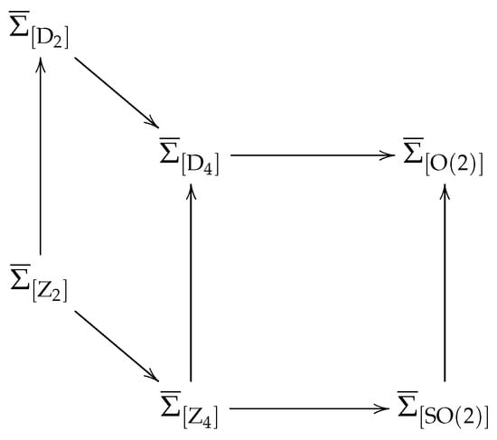 - Golubitsky, M.; Stewart, I.; Schaeffer, D. Singularities and groups in bifurcation theory. In Applied Mathematical Sciences; Springer: New York, NY, USA, 1988; Volume II. [Google Scholar]