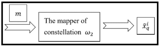 The mapper2 of the constellation maps them onto points of the M-QAM/M-PSK constellation which are on the complex plane, and the output will produce two modulated signals, which are described as follows,