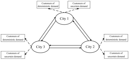 Assumption 5: The demand of empty containers in some cities is uncertain, and the probability distribution of empty container demand is a distribution set. In each time period, the empty container demand of each city is independent and fixed.