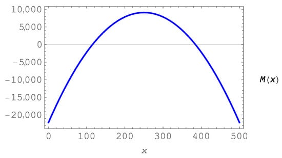 As for the bending moment, the same steps are followed. Starting from the normal stresses in Equation (15) that are multiplied by , it is obtained: