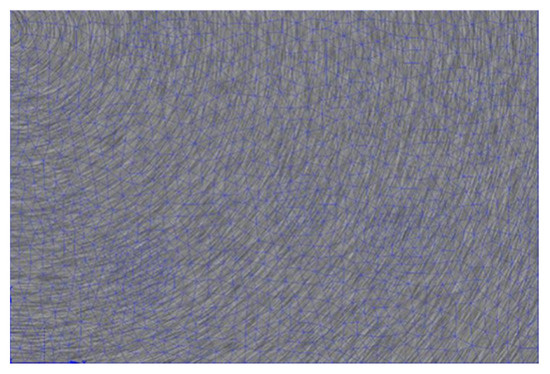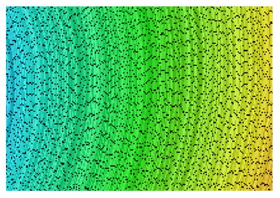 It should be noted that when using Equation (12), since all the streamlines in the texture have a fixed color, aliasing artifacts may occur. The reason why aliasing of the artifacts does not occur in the LIC algorithm is that the gray values of each streamline in the LIC algorithm constantly and randomly change, while the gray values of each streamline in the SRIS algorithm are always fixed, thus resulting in aliasing artifacts. If this distortion needs to be avoided, Equation (9) can be reused to avoid aliasing artifacts, as in Figure 8.