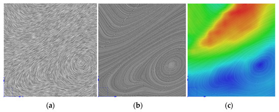 - Detlev, S.; Hege, H.C. Fast and resolution independent line integral convolution. In Proceedings of the ACM Siggraph, Los Angeles, CA, USA, 6–11 August 1995; pp. 249–256. [Google Scholar]