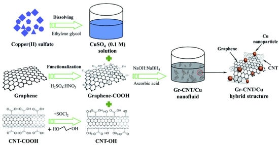 - Van Trinh, P.; Anh, N.N.; Thang, B.H.; Hong, N.T.; Hong, N.M.; Khoi, P.H.; Minh, P.N.; Hong, P.N. Enhanced thermal conductivity of nanofluid-based ethylene glycol containing Cu nanoparticles decorated on a Gr–MWCNT hybrid material. RSC Adv. 2017, 7, 318–326. [Google Scholar] [CrossRef]