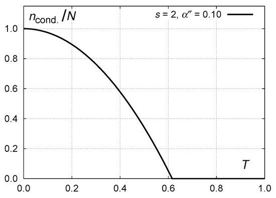 Figure 3. Temperature dependence of the “condensate” fraction for s = 2 and α = 0.1 + 0.1 i .
