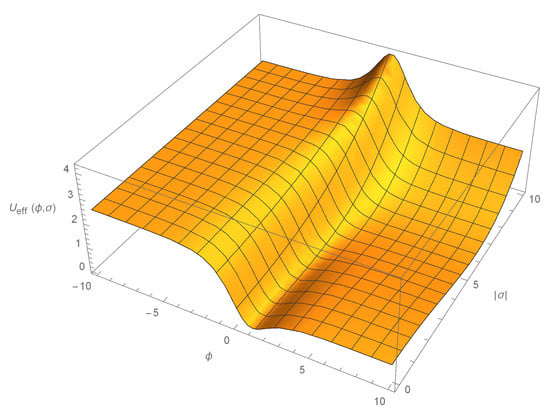 Qualitative shape of the two-dimensional plot for the effective scalar potential (26).