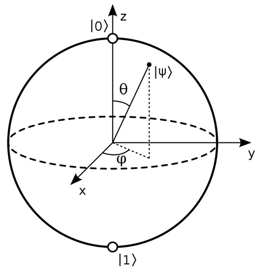 (see [37]). Considering the representation of a two-level quantum system by the Bloch sphere (Figure 1) above, a quantum state () can be represented with the below density matrix ,