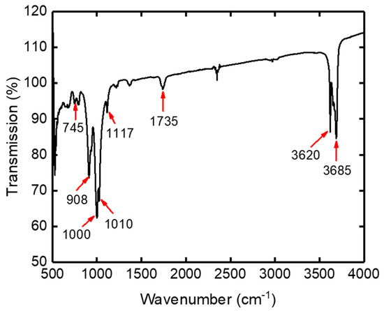 Fourier-transform infrared spectroscopy (FTIR) spectra of kaolin powders.