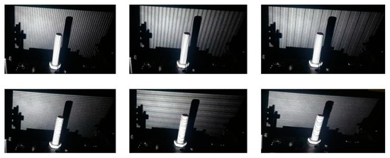 A certain frequency of structured light is projected onto the surface of the object by a projector, and a deformed raster image is generated on the surface of the object. Then, a CCD camera is used to obtain a two-dimensional distorted image of the object. Finally, the distorted raster image is compared with the reference grating, and after conducting Fourier transform dephasing, the 3D profile of the object can be obtained. The structure cursor system diagram and the multifrequency structure raster projection diagram are shown in Figure 5.