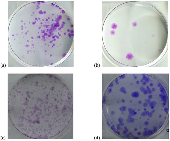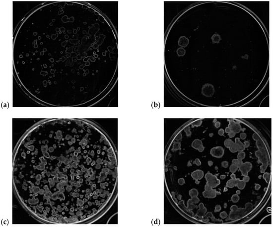 - Thielmann, H.W.; Hagedorn, R.; Freber, W. Evaluation of colony-forming ability experiments using normal and DNA repair-deficient human fibroblast strains and an automatic colony counter. Cytometry 1985, 6, 130–136. [Google Scholar] [CrossRef] [PubMed]