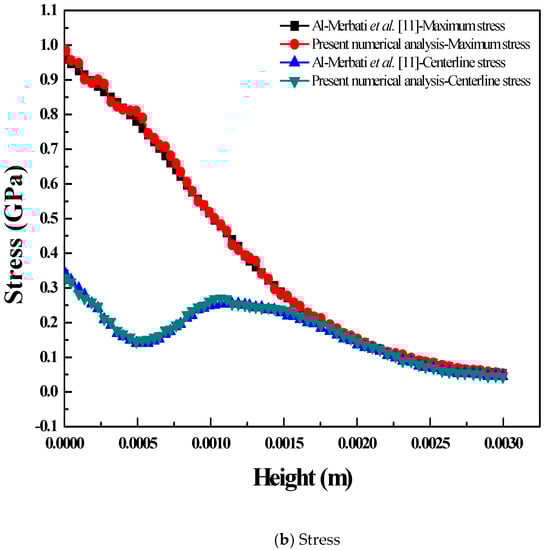 Validation with previous study for (a) maximum power and (b) stress.