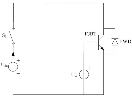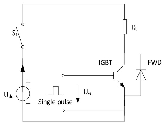During the power cycle test, the test is suspended once every 1000 power cycles. The single pulse test is performed on the IGBT module in symmetry to measure the saturation voltage drop, current and junction temperature of the IGBT in the current power cycle. The single pulse test circuit of IGBT is shown in Figure 4.