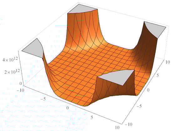 Now, we will give the 3D-plot of some of these M-polynomials with the help of Mathematica. In particulary, the 3d-plot of M-polynomial of dendrimer nanostar is shown in Figure 4 and for two nanotubes and in Figure 5 and Figure 6 respectively.