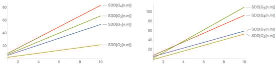 On the testing sets supplied by the International Academy of Mathematical Chemistry, it showed good predictive properties. It can also decently predict the total surface area for polychlorobiphenyls. Therefore, from Figure 8, we note that the symmetric division index of rises sharply with being much greater than . Similarly, we can also take note in reference to Figure 10 that has the largest index among all four nanotubes for .
