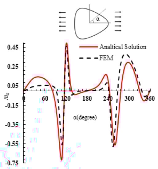 Such that  is the initial derivative of the mapping function in regard to . Ultimately, by implementing Equation (33) in Equations (12) and (13), the forces and moments per unit length are acquired.