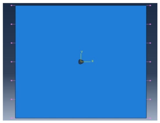 Due to the hole boundary being considered to be free from traction, regarding the second condition, it is assumed that at the hole boundary, an opposing force to the internal load stemming from the external load of the initial condition offsets its impact. Therefore, the boundary conditions are: