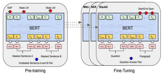 - Devlin, J.; Chang, M.W.; Lee, K.; Toutanova, K. Bert: Pre-training of deep bidirectional transformers for language understanding. arXiv 2018, arXiv:1810.04805. [Google Scholar]