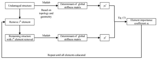 where is the determinant of the tangent stiffness of undamaged structures, and is the determinant of the tangent stiffness of the structure after the failure of the element i. The αi is in the range of [0,1]. When the index is equal to 1.0, the element is regarded to be the most important. Conversely, the element with the index zero will not change the tangent stiffness of the truss structure.