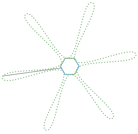 Tests performed with this method and observed in Figure 11 show the importance of minimizing the length of the Gielis curve, aiming to avoid the repetition of segments in the obtained Gielis curves. Then, we include the length of the Gielis curve in the function given by Equation (13), and we obtain the following objective function.