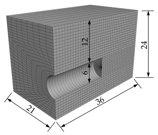 In order to expand the above three-dimensional solution without considering the pore water pressure behind the tunnel face to the three-dimensional solution considering the pore water pressure behind the tunnel face, a numerical model, as shown in Figure 2, is established by FLAC3D software, considering the symmetry of the tunnel. Here, the diameter of the tunnel is 6 m, the thickness of the covering soil is 12 m, the top surface is free and the hydraulic head pressure is fixed at 1 m, the bottom surface and the side wall of the tunnel are fixed and impermeable, the surrounding normal direction is fixed and impermeable, the tunnel face is fixed in the normal direction, the hydraulic head difference between the tunnel face and the ground surface is fixed at 0.5, 1.0 or 2.0 , and the friction angle of the soil is 37°, 31° or 25°. Then, the distribution of pore water pressure is obtained by three-dimensional seepage calculation.