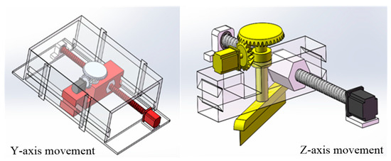 The overall structure of the placement machine adopts the gantry type, the placement head is assembled on the gantry frame and the worktable is placed under the placement head. The movement of the screw is controlled by a servo motor to apply placement pressure. Due to the advantages of good controllability, high stability and high-speed response, the servo motor is suitable for high-precision control conditions. The composite tape is heated to make the resin melt to produce better viscosity in the placement process, which can make the layers better combined. The structure of the heating device and the pressure actuator are shown in Figure 3. To ensure the cutting edge of the tape is complete and smooth with better shearing quality, the designed tape cutting mechanism is shown in Figure 4. The cutting tape actuator is mainly composed of two servo motors and a cylinder. The placement pressure control process is shown in Figure 5. In order to facilitate the establishment of the mathematical model, core hysteresis and eddy current loss are ignored. According to Kirchhoff’s law, voltage equation of motor winding can be expressed as follows: