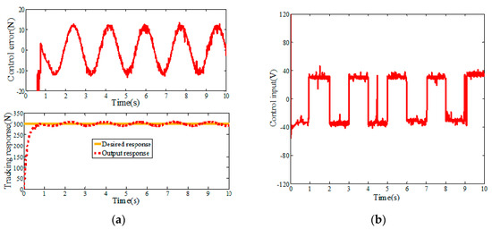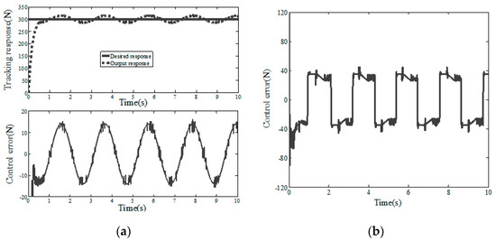 Step response of ASMC (simulation). (a) Control error and tracking response (b) Control input.