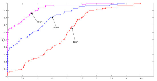 where is the merit function evaluation at , with . The parameters used for both TSSP and SGCS in this experiment come from Reference [36] except for in the line search (1) and