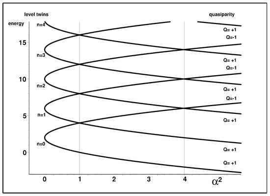 - Dorey, P.; Dunning, C.; Tateo, R. Spectral equivalences, Bethe Ansatz equations, and reality properties in PT-symmetric quantum mechanics. J. Phys. A Math. Gen. 2001, 34, 5679–5703. [Google Scholar] [CrossRef]