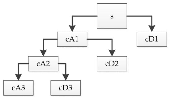 Figure 3, and then the noise part is usually included in the high-frequency or low-frequency signal, and the wavelet coefficients are processed in the form of threshold value as required. Reconstruction of the signal can then achieve the purpose of noise reduction. In the figure, cA and cD are the returned low-frequency and high-frequency coefficient vectors, respectively. The decomposition relation is
