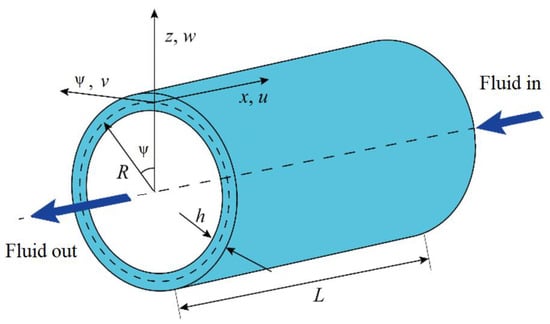 Schematic and coordinates of an anisotropic fluid-conveying cylindrical shell.