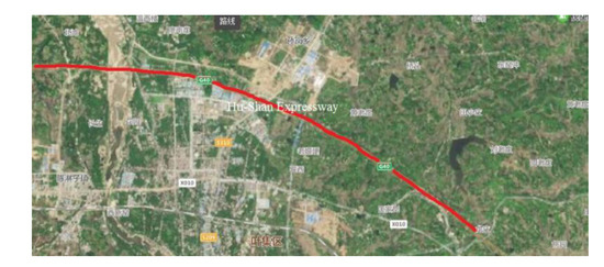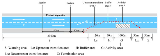 The Hu-Shan expressway is called Shanghai-Xi’an expressway, with a total length of 1490 km. The Hu-Shan expressway maintenance operation areas studied in this paper belongs to Anhui section. The section is a two-way four lane expressway with a total length of 82 km, a design speed of 100 km/h and a lane width of 3.75 m, as shown in Figure 1. Among them, the type of maintenance operation area is the closed outer lane.