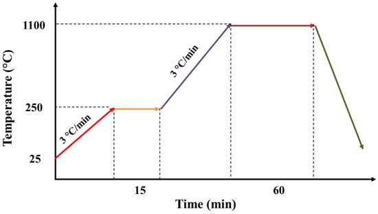 The sintering of the support was realized in the following steps. First, the temperature of the chamber was increased from the ambient temperature to the temperature of 250 °C, with a rise speed of 3 °C/min and a plateau of 15 min. During this step, water could be eliminated quickly. Second, the temperature was increased from 250 to 1100 °C with a rise speed of 3 °C/min and a plateau of 60 min. During this step, organic matters could be removed (Figure 1).