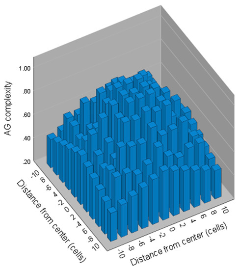 Recently, Aksentijevic & Gibson [32] described a general complexity measure, which was motivated by the need explicitly to quantify processing cost. The measure, Aksentijevic–Gibson (AG or “change”) complexity dispenses with the idea of a source/algorithm and considers only pattern structure. The measure is fully computable and applicable to any kind of information (see [1] for the application of AG in physics). It is not surprising that the cost of information processing is intimately linked with structure. The general definition of structure we provided above goes some way towards distinguishing between quantitative and structural aspects of information. For example, patterns “ABA” and “BAA” cannot be distinguished quantitatively because they contain the same proportion of two symbols. Yet, they differ in terms of the positions of individual symbols. Are they also different in terms of complexity?