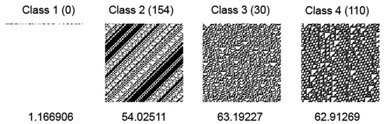 - Vitz, P.C. Information, run structure & binary pattern complexity. Percept. Psychophys. 1968, 3, 275–280. [Google Scholar]