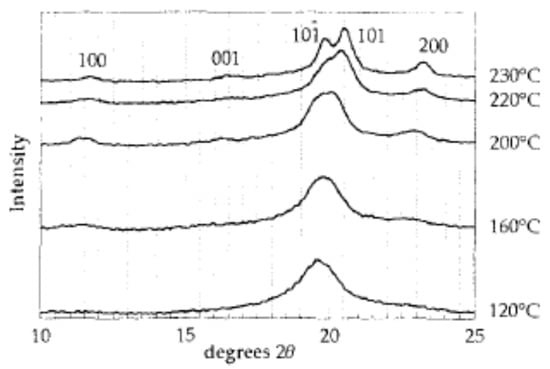 X-ray powder diffraction traces from films annealed at different temperatures. Reprinted with permission from [25]. Copyright 1998 Elsevier B.V.