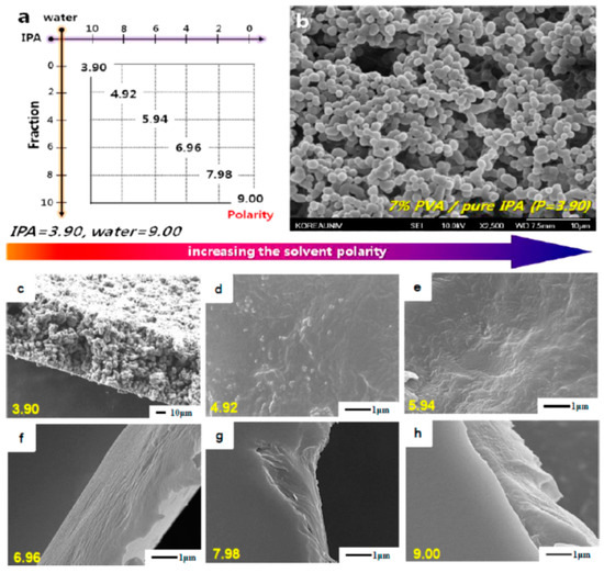 Polarity of the binary solvent mixtures and morphology of the PVA matrix prepared at each solvent polarity. Reproduced with permission from [64]. Copyright 2014 ACS publications.