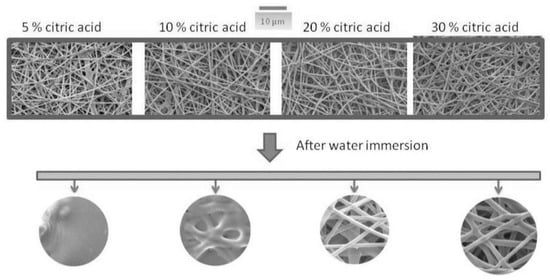 SEM images of citric acid–PVA membranes before and after water immersion. Reproduced with permission from [54]. Copyright 2017 WILEY-VCH Verlag GmbH & Co.