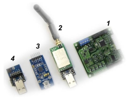 Circuitry solution of managing the 8th channel analytical system. 1—the module of management of the 8th channel analytical system, interfaces of switching with the server: 2—a radio channel, 3—RS 485, 4—UART/USB 2.0.