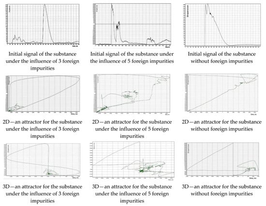 According to Figure 6, it is visible that despite obvious differences in phase trajectories, it is difficult to precisely identify the substance. Values of correlation, phase, and fractal dimensions and Hurst exponent for each case are given in Table 1.