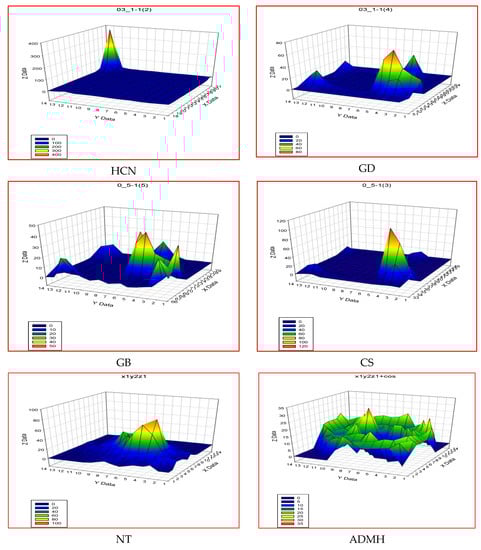 - matrixes of splittings are created, and surfaces (Figure 8) that are a visual image of the corresponding dynamic system are constructed;