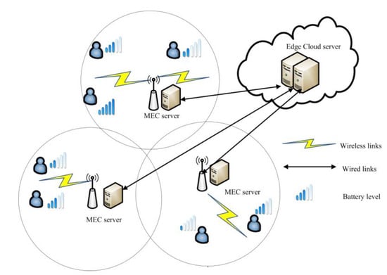 With the development of mobile communication technology and the popularization of smart mobile devices, such as smart phones and smart watches, various network services and applications are constantly emerging [1,2]. These new mobile applications, such as e-health, biometric recognition [3], surveillance, and augmented reality/virtual reality (AR/VR), require not only a large amount of computing, but also a high energy consumption [4]. Benefiting from the widespread application of “Internet of Things” (IoT) and “cloud computing” technologies, mobile cloud computing (MCC) has become a potential solution to enhance the computing capabilities of IoT applications, shifting the computing tasks of IoT devices to those with sufficient computing and storage capabilities on a centralized cloud server [5]. However, users accessing the remote centralized cloud computing and storage resources through the internet will cause a relatively long delay, which makes MCC unable to meet the conditions of some delay-sensitive applications.