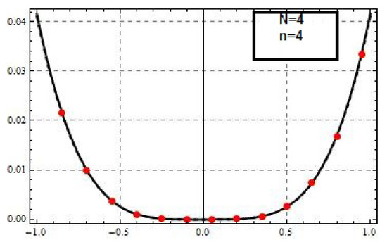 This problem was also solved in [4,21] by a method based on Legendre and Chebyshev polynomials. The best reported maximum error is . Table 2 shows that we can attain good numerical results compare to the numerical results in [4,21] for .