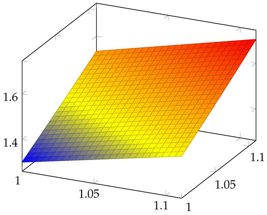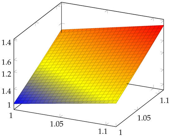 We remark that u x , y = x y 2 and v x , y = x y 2 + 3 x 10 represent two surfaces. We have drawn these surfaces in Figure 1 and Figure 2, respectively, and, in Figure 3, both of them are overlapping. We can see that these surfaces are close to one another.