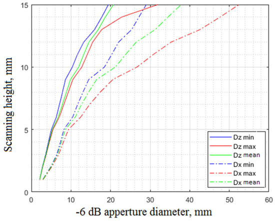 where is scanning step in x direction, is scanning step in y direction, h is scanning height, is −6 dB aperture radius along the x axis, is −6 dB aperture radius along the y axis.